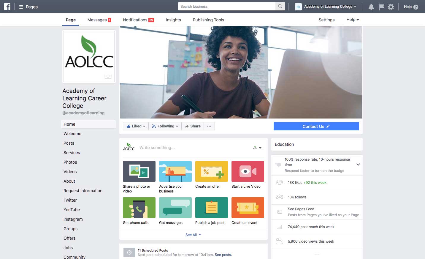 Academy of Learning Social Media Redesign